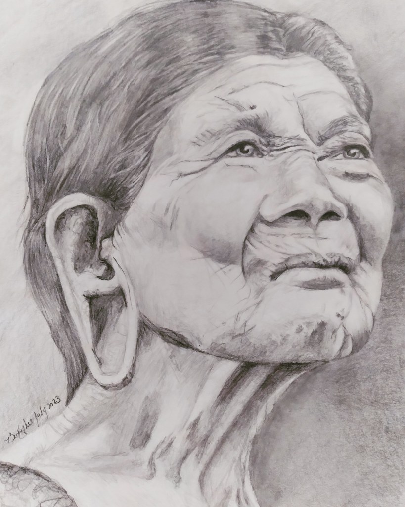 This is the first graphite portrait of the 2023 year. She is 14×20 inches in diameter.