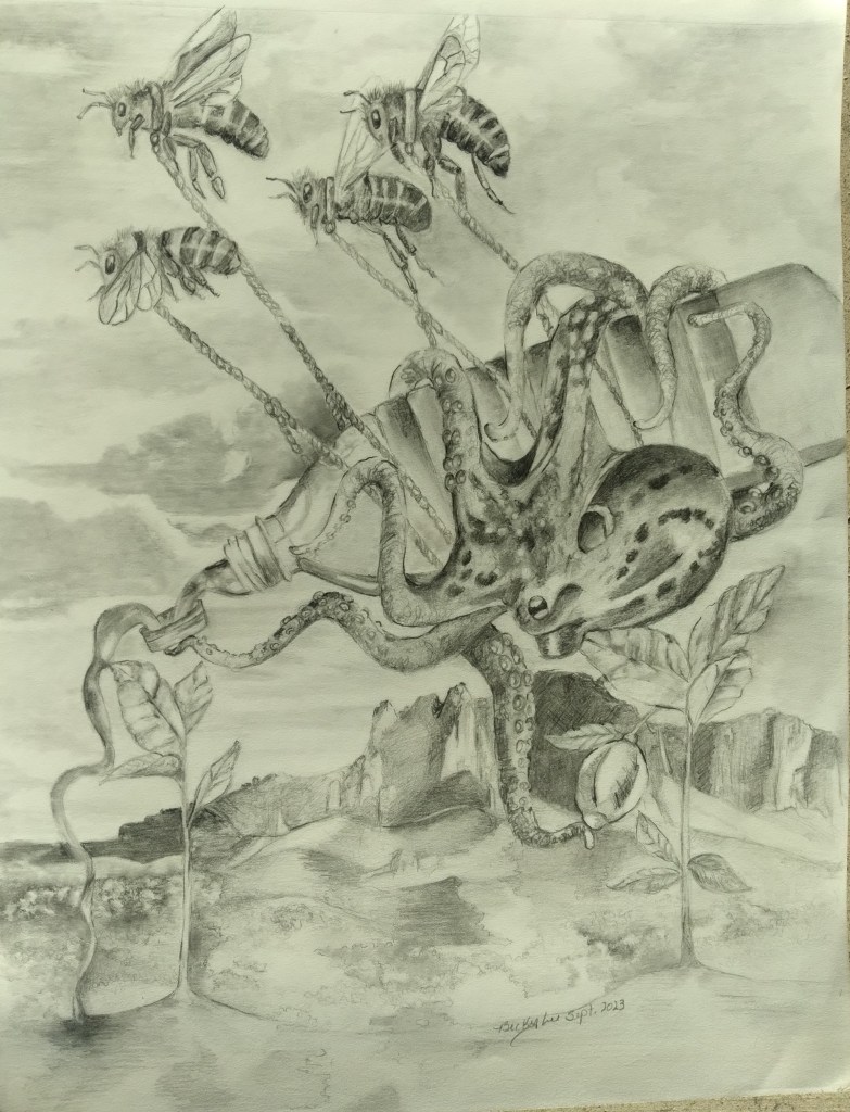 This is a 11 x 14 inch graphite that I created to express what I had been seeing in Arizona when we first moved here. It is currently available for viewing at Artistonish: October – 2023 | Issue# 39